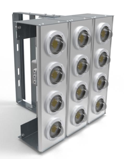 Светильник светодиодный ПСО-03-520-01,02-УХЛ1 модульной конструкции, предназначен для установки на осветительных вышках компрессорных станций, предприятий атомной промышленности, а так же в решении задач в освещении большой площади (стадионы и т.д.).